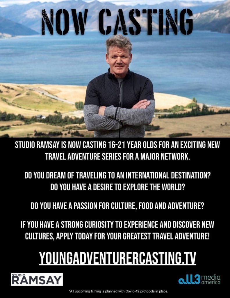 Gordon Ramsay and his producers are now casting teens 16+ (16 to 21) for a new adventure reality series.