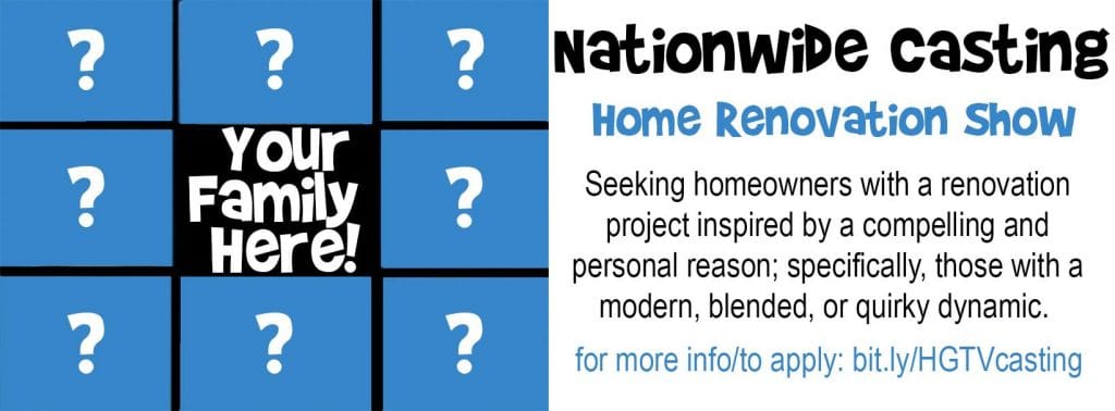 Are you and your family renovation your home or about to renovate? If so, casting directors for an upcoming television series may want to hear all about your project.