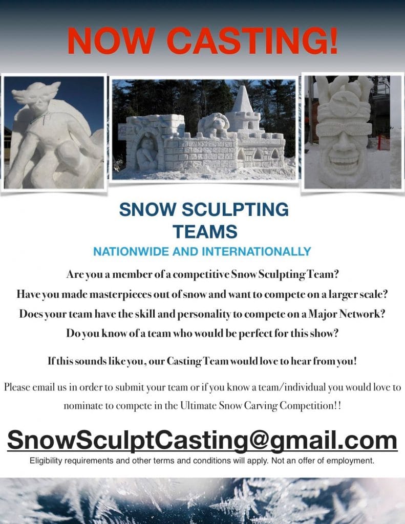 A Major US Network is currently casting the Ultimate Snow Sculpting Competition and looking for TEAMS to compete for a large grand prize!