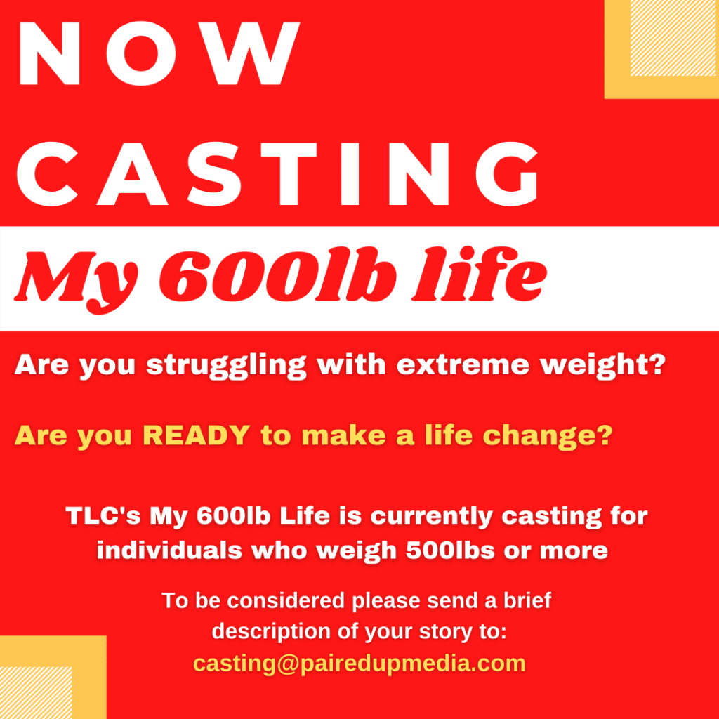 Are you or someone you know struggling with extreme weight and ready to make a life change? The TLC television series “My 600-lb Life,” is currently searching for individuals weighing 500 pounds or more who are ready to embark on a year-long journey to regain their health. Each episode follows the lives of real people suffering from super obesity on a road to better health. They make the courageous decision to save their lives and change their world forever.