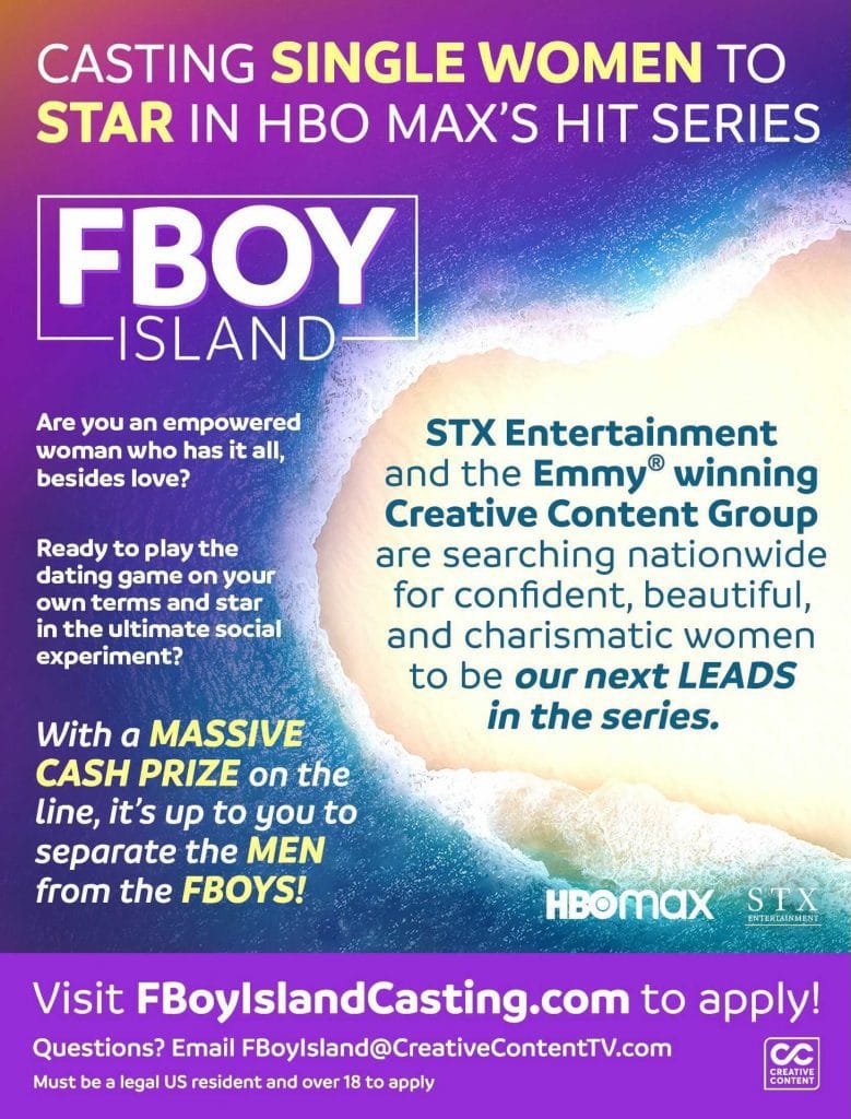 HBO Max TV show FBOY Island is now casting nationwide.