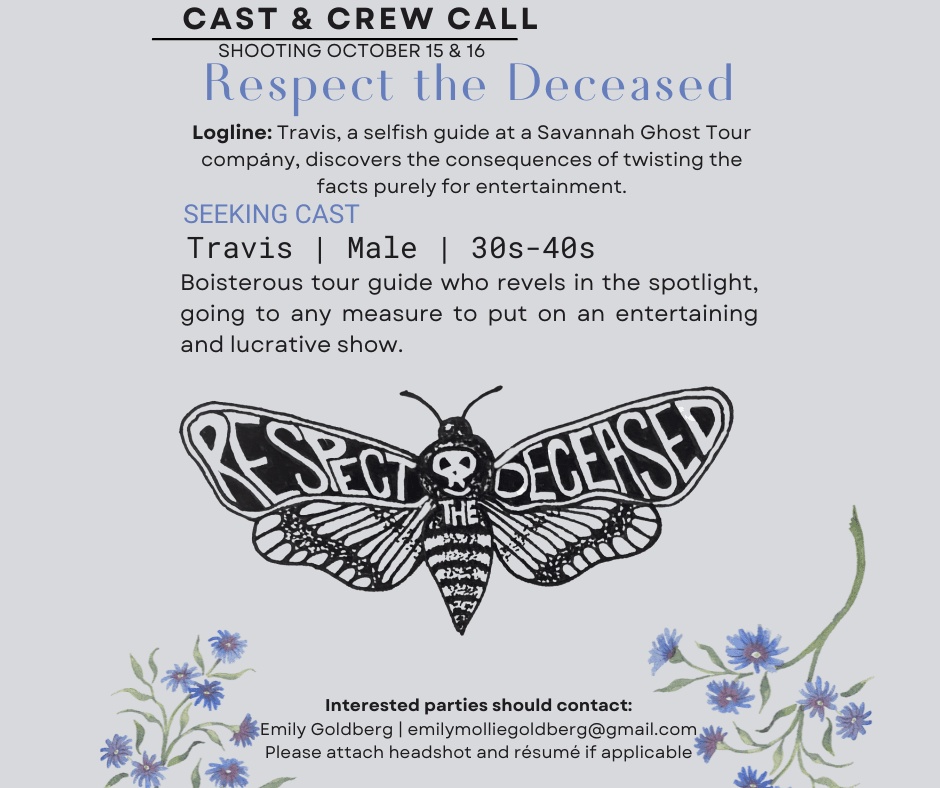 Urgently seeking male actor who can present between 30s-50s with a large, boisterous screen presence for SCAD student film to film this weekend.