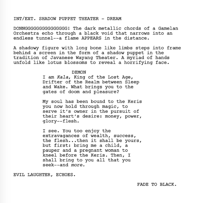 DEMON is small in stature, vicious, and revolting (Special Effects). DEMON slithers and dances through the shadows, appearing at opportune times to take advantage of desperate men. DEMON also has a sense of humor, sardonic.