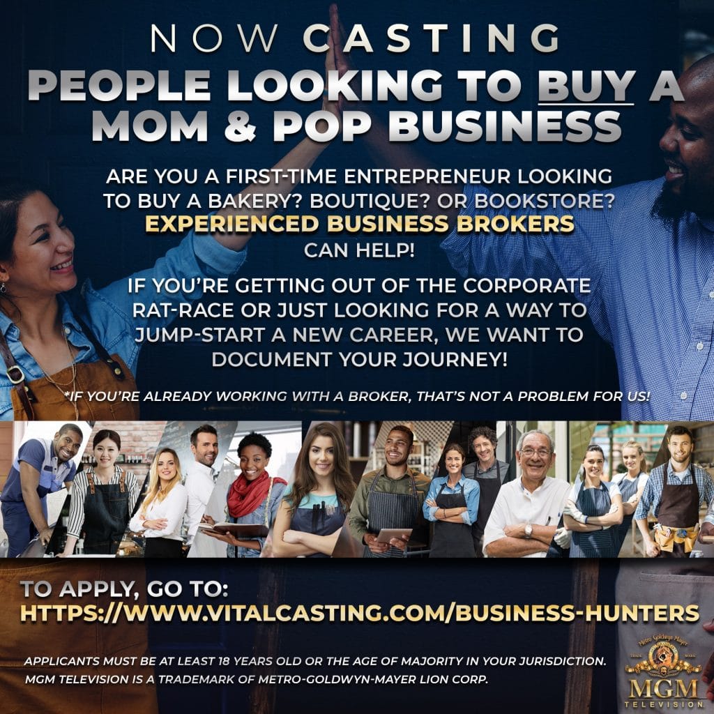 If so, a TV show and their casting directors would love to hear about your journey to becoming a business owner. The show has experienced business brokers that may be able to help and the show would love to document your journey that takes you away from your normal job, corporate rat race and into a new career.