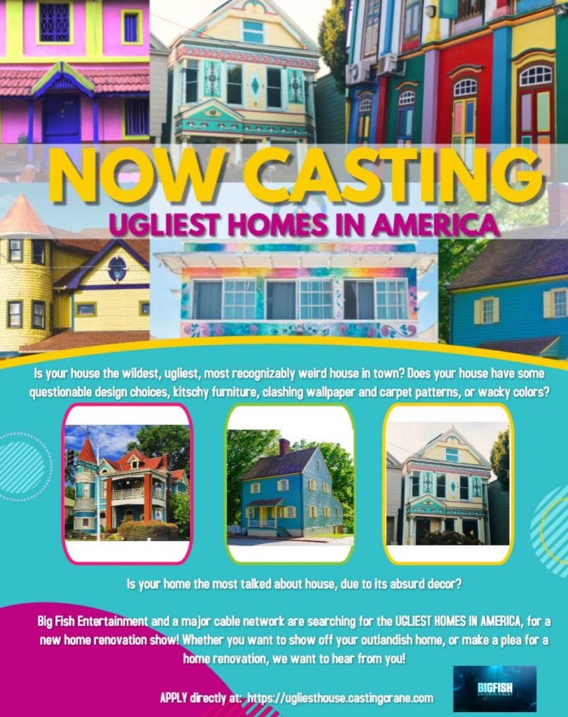 Does everyone talk about your house due to the crazy decor, absurd paint job or just the sheer eye sore factor? A production company would love to hear all about your ugly or outrageous home.