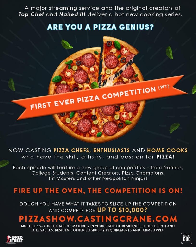 Do you have what it takes to slice up the competition and compete for up to $10K? If you’re known in your circle as the supreme pizza genius, apply at pizzashow.castingcrane.com!