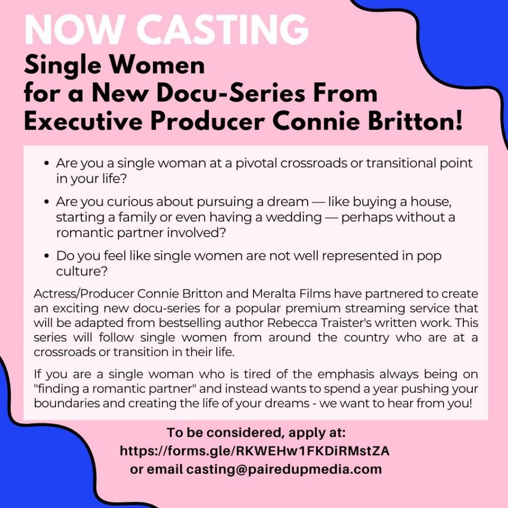 NOW CASTING: Single Women for a New Docu-Series From Executive Producer Connie Britton!