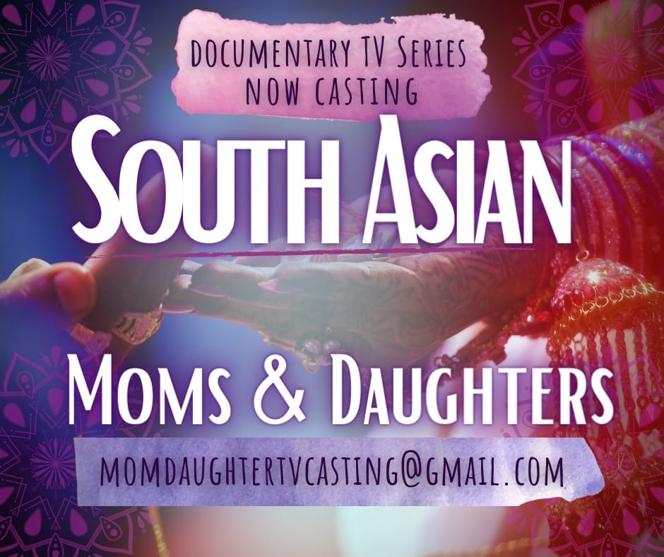 Seeking outgoing, fun, loving, and extremely close South Asian mom and daughter duos to star in a show that celebrates mother and daughter relationships. Seeking moms who are still VERY involved in all aspects of their daughter’s lives, from giving input on the love life, to jobs, to even caring for them at home, producers are seeking mom and daughters who have an incredibly close knit bond, who’s lives are intertwined, who do everything together and are one another’s best friends.