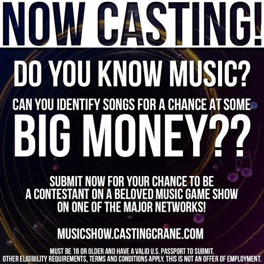 Submit now for a chance to be a contestant on a beloved music game show on one of the major networks!