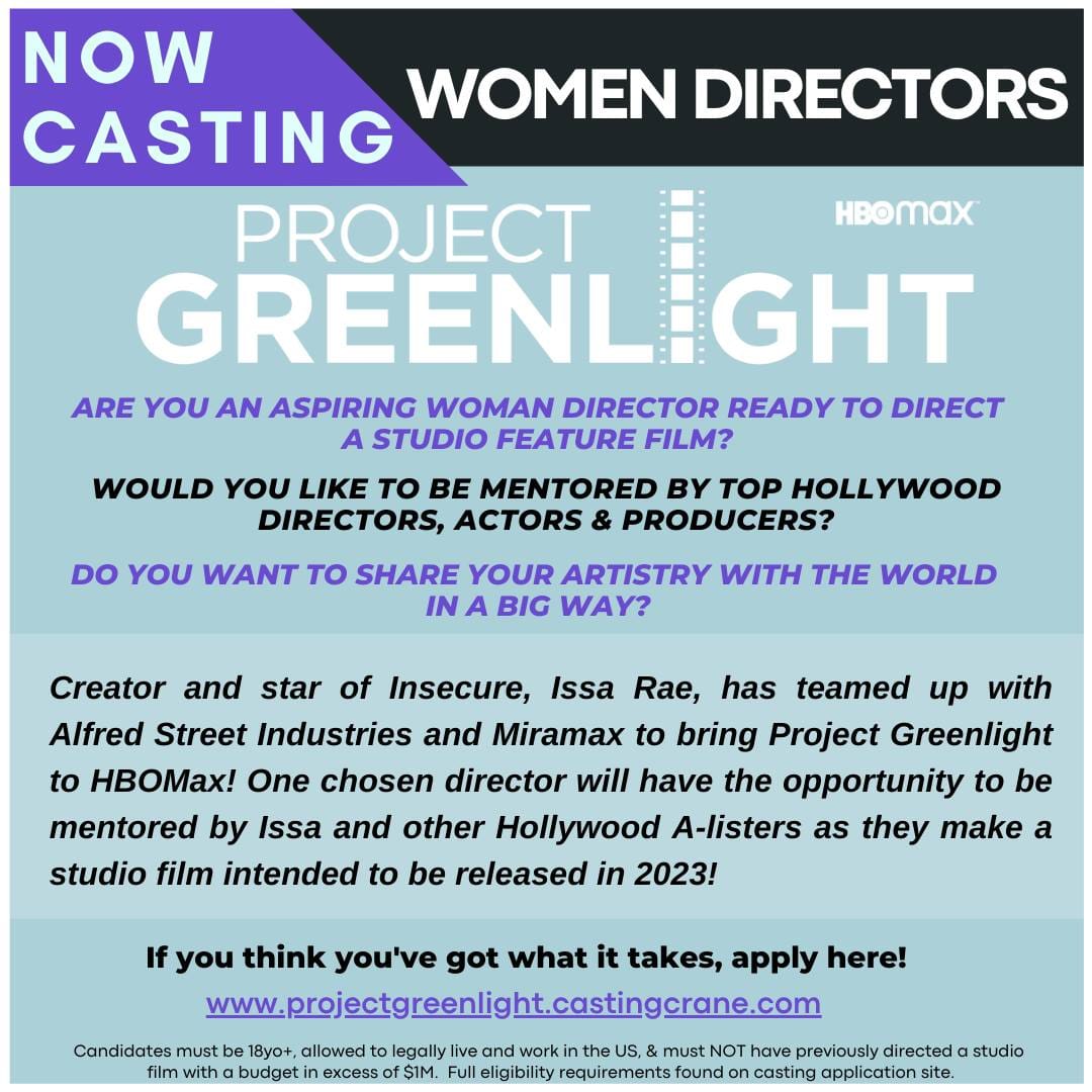 HBOMax and Executive Producer, Issa Rae, are teaming up to find talented, aspiring and undiscovered women directors for the revival of the popular show Project Greenlight! One chosen director will have the opportunity to be mentored by Issa and other Hollywood A-listers as they make a studio film, from pre-production to post. The entire journey will be documented in a new series on HBOMax and the feature film is intended to be released in 2023!