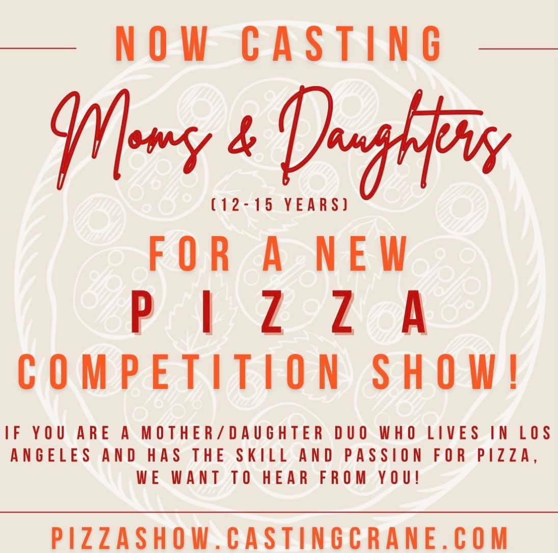 Currently looking for Moms and Daughters (kids between the ages of 12-15) for a fun new pizza competition show from the creators of Top Chef and Nailed It!
