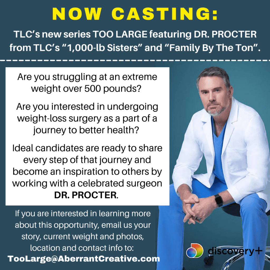 NOW CASTING TOO LARGE? ARE YOU 500lbs+? WANT HELP LOSING WEIGHT?