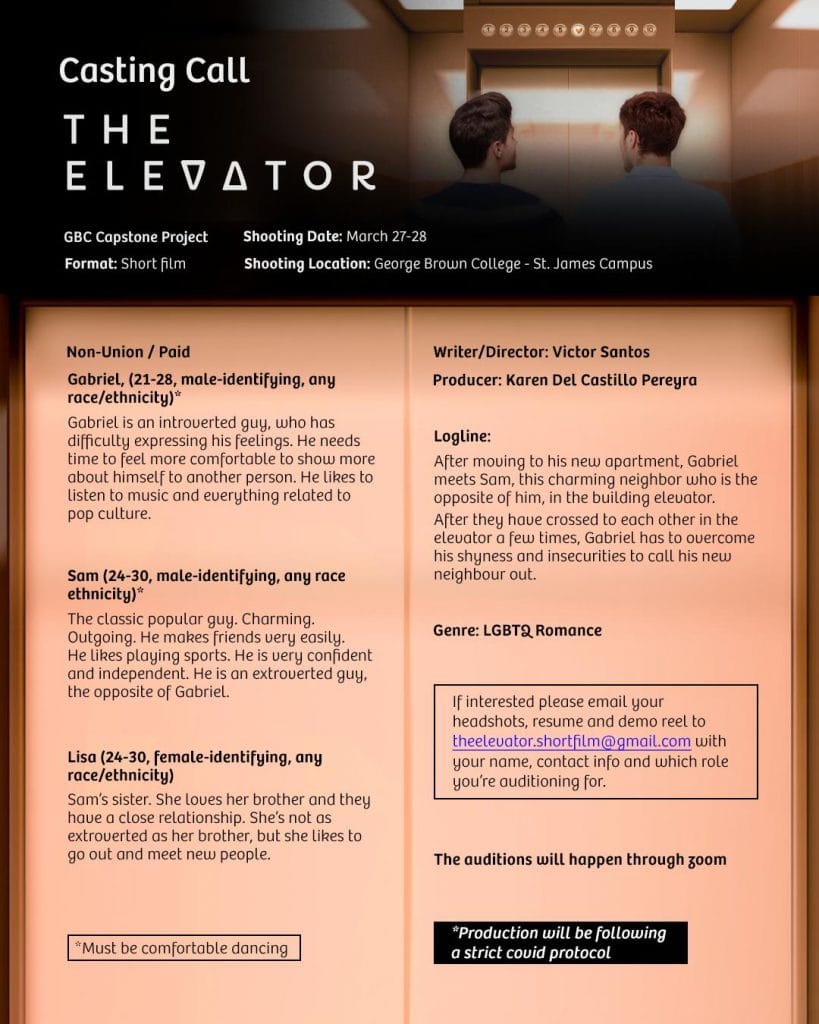 Seeking two male actors for the roles of Sam and Gabriel. ( Acting and dancing skills required) Age 24-30