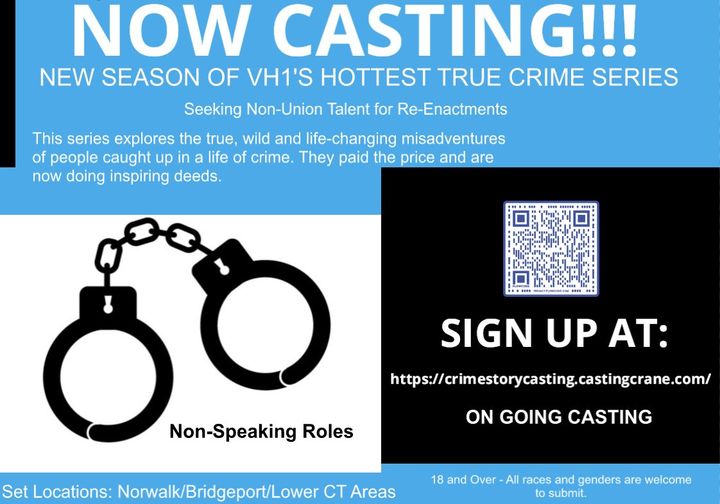 The VH1 show “My True Crime Story” is now filming new episodes in the NY Tri State area and the show is doing an online casting call for people that live in the Bridgeport & Norwalk areas of Connecticut or in and around that area for both principal and supporting roles in the series. These are paid, non-union acting jobs.