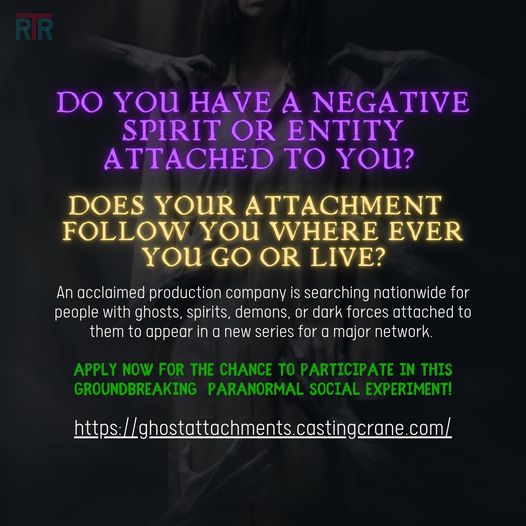 An acclaimed production company is casting nationwide for people between the ages of 21-40 who have a GHOST or some other dark energy attached to them!