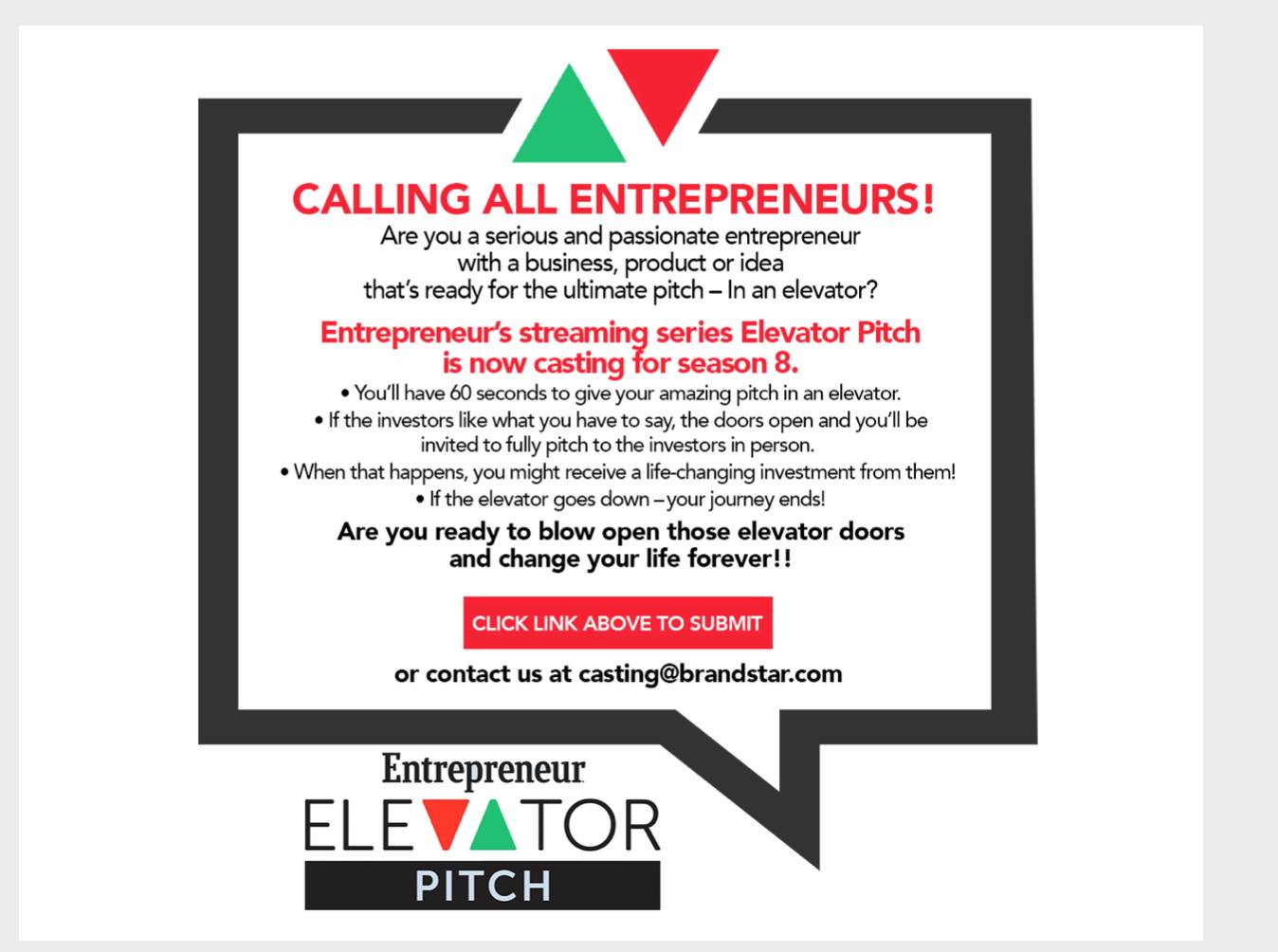 Entrepreneur.com’s streaming series Elevator Pitch is now casting for Season 8!