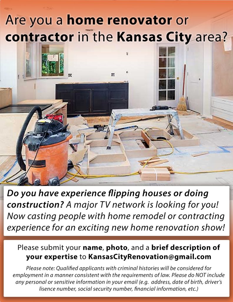 Do you have experience flipping houses, doing home remodels, or general contracting? We want to hear from you! We’re currently looking for someone with hands-on experience for a new home renovation reality TV show.