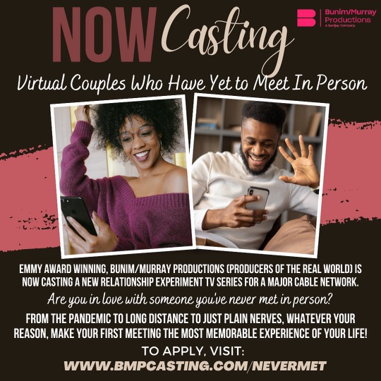 A major reality TV production company is working on a show that would love to hear from people who have never met in person, yet consider themselves in a relationship and maybe even in love. Casting directors have an open casting call for folks who meet the above description for a new show that is described as a relationship, social experiment and is being produced for a major cable network.