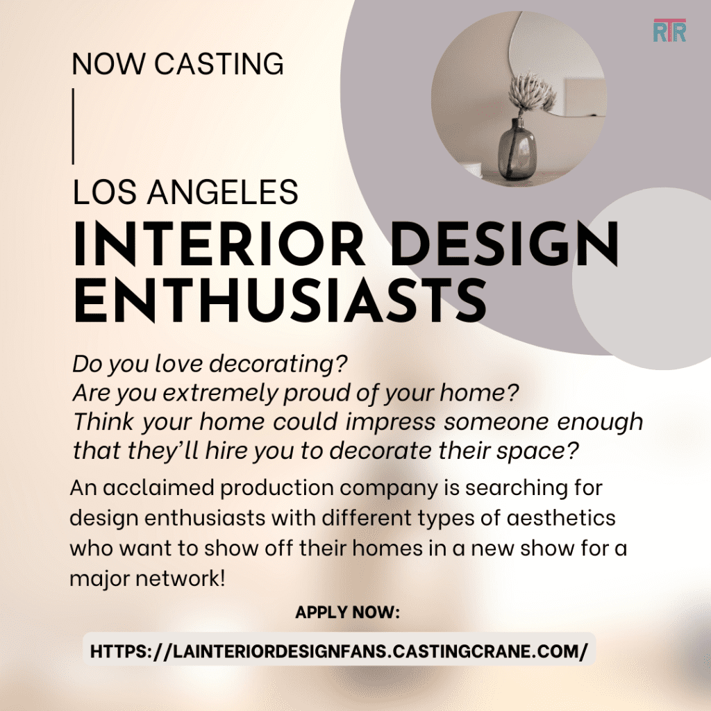An acclaimed Los Angeles area production company is working on a new design show and is looking, specifically for Los Angeles area residents that have a passion for interior design. The casting directors for the show are looking for design enthusiasts with different types of aesthetics, who would love a chance to show their skills and their homes, for a new show on a major cable network.