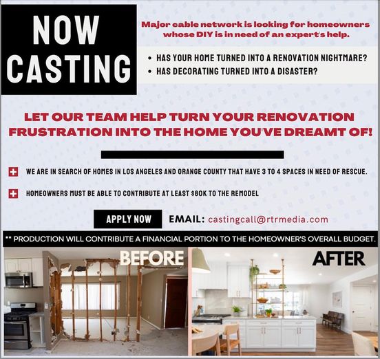 NOW CASTING Major Cable network is looking for homeowners whose DIY needs expert help!