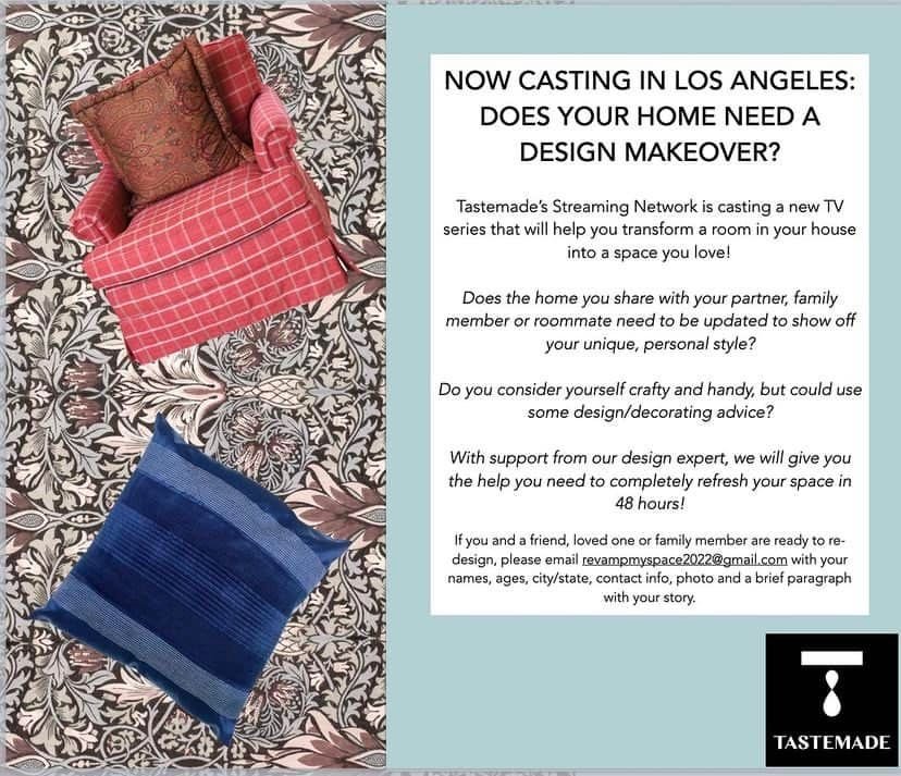 If so Tastemade would love to hear your story. Casting directors for Tastemade are seeking Los Angeles area residents who consider themselves crafty, but are looking for some advise on how to show off their personal style in their home. Tastemade is looking for folks to help with their home design ideas and who are ready to get it going and completed within 48 hours.