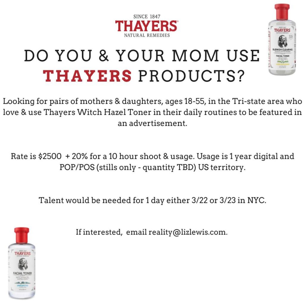 Casting people for a promo who use Thayers Witch Hazel.
