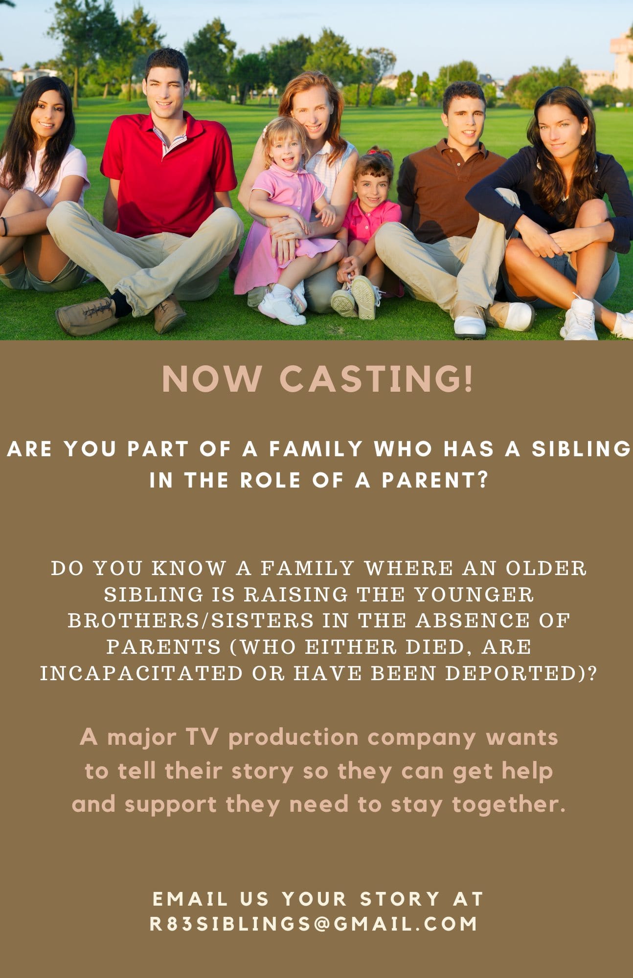 If so, casting directors and producers of a docu-series may want to hear your story. If you a part of a family where a sibling is taking care of and raising younger children, read on.