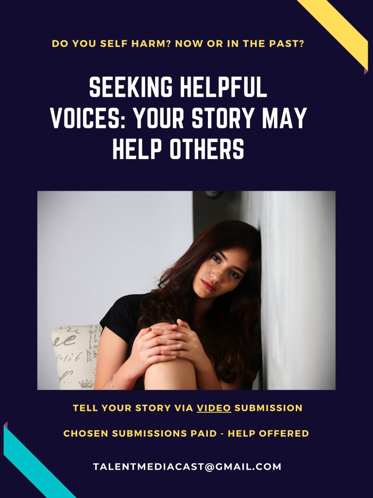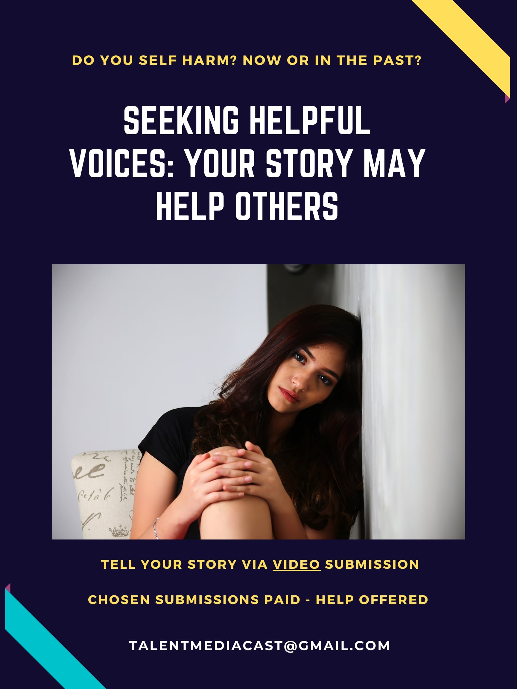 Seeking individuals that can speak on a serious issue & help others. If you self harm or have done so n the past, we’d like to share your story. How are you coping, receiving professional help? Would like to receive help? What triggers you, do you know the underlying cause? If you have conquered this behavior, what was the turning point? How were you able to stop harming yourself? This show is educational but may be sensitive or troubling. Your mental health matters, you are advised to check with your doctor before submitting. Submissions; prefer video submissions speaking about what life is like to be you as someone who self harms. Chosen submissions are paid. Most all will be chosen – this is a docu-series and is ongoing. Peer & professional help will be offered. Individuals under 18 must have parental consent.