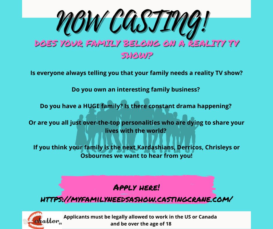 If so, a TV production company and their casting directors would love to hear all about your family drama to possible cast your family in their own reality show.