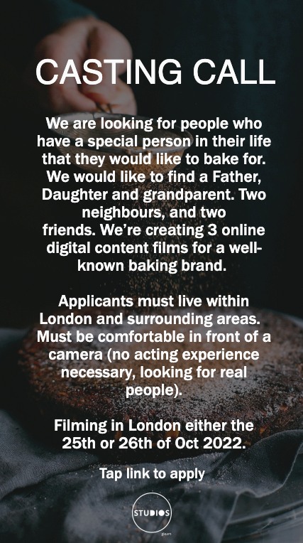 We are shooting three different digital branded content films for a well-known baking brand, and we are looking for the