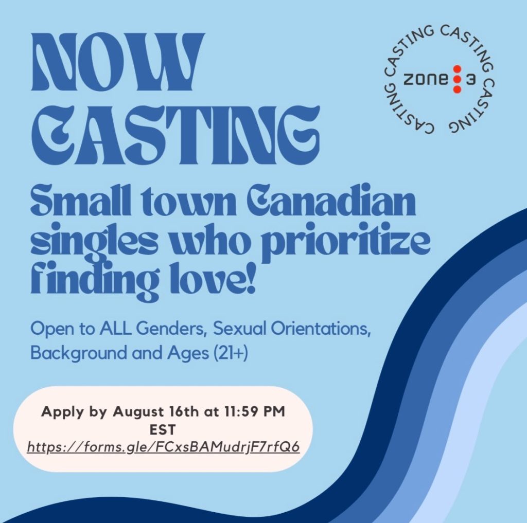 We’re casting singles from small towns throughout Canada for a major Canadian broadcaster.