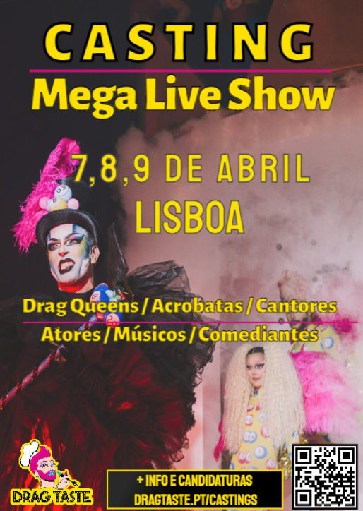 ?If you would like the opportunity to be a part of this Mega Live Show, fill out the form in dragtaste.pt/castings or send an e-mail for castings@dragtaste.com with the previous requisitions.