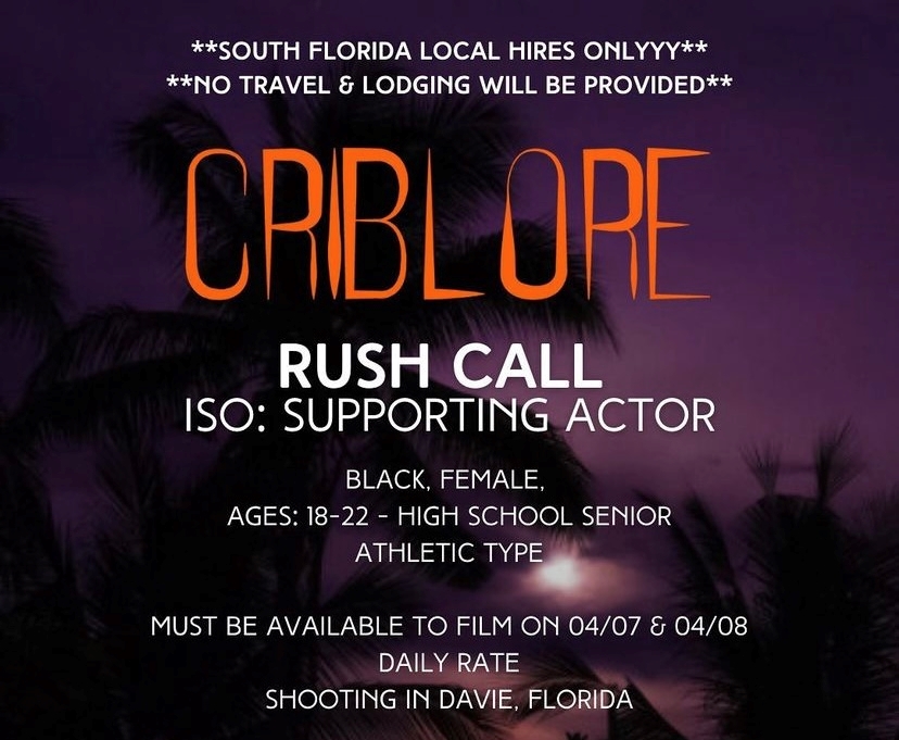 RUSH CASTING CALL for Central Florida/South Florida based female actress for a supporting role in a new TV series.