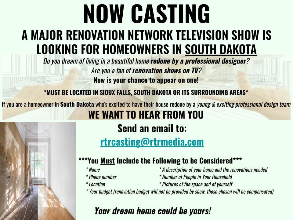 Do you own a home in South Dakota? If you do, read on because casting directors for a new home renovation show may want to hear about your home and what it is at your house that you would love to get made over.