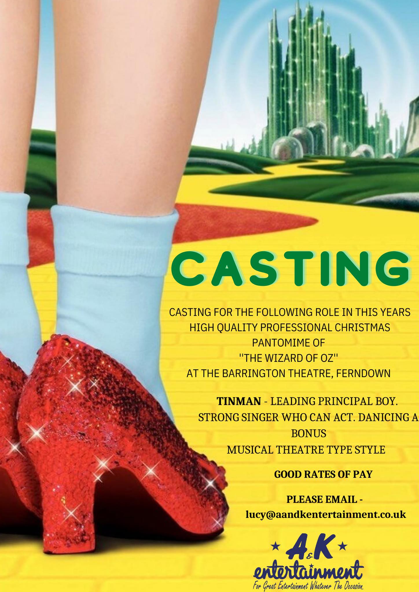 Looking for a strong musical theatre type performer to join us in the fully professional, high quality production of “The Wizard of Oz”