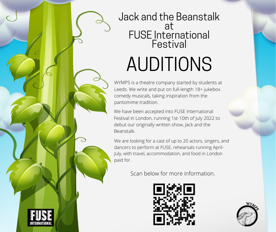 We are excited to announce we are holding open auditions for our company debut, Jack and the Beanstalk, on the 5th of March at 10am in the Lending Room! This original show will be performed for the first time at FUSE International 2022 in Kingston, London, in July.