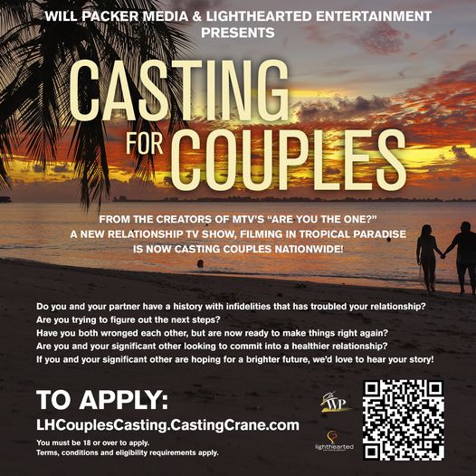 FROM THE CREATORS OF MTV’S “ARE YOU THE ONE?” A NEW RELATIONSHIP TV SHOW, FILMING IN TROPICAL PARADISE IS NOW CASTING COUPLES NATIONWIDE!