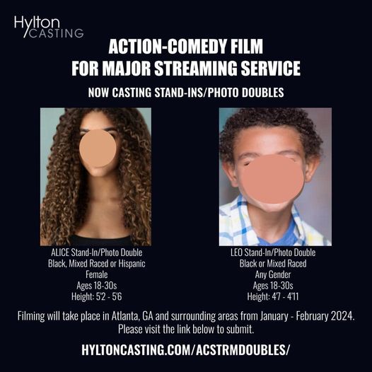 Hylton Casting is currently casting stand-ins for an upcoming action-comedy film from a major streaming service.