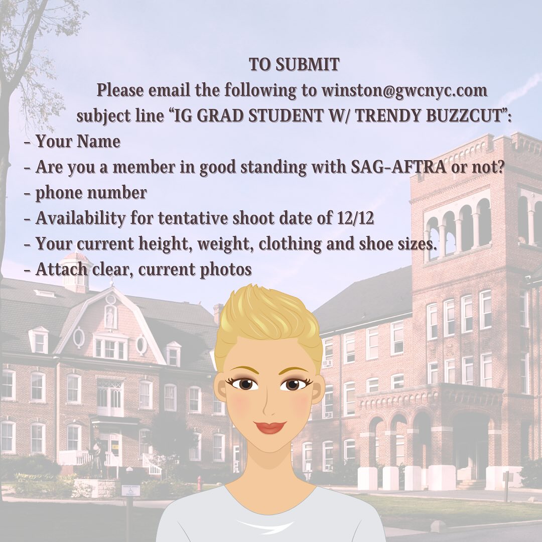 To apply, email the following details to winston@gwcnyc.com with the subject line “IG Grad Student w/ Trendy Buzzcut”: