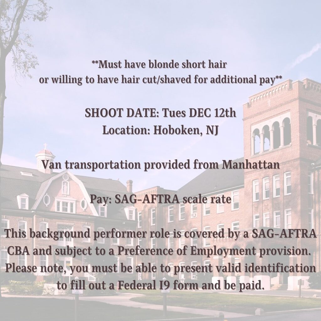 Applicants must have blonde short hair or be willing to undergo a hair cut/ shaved head for additional compensation.