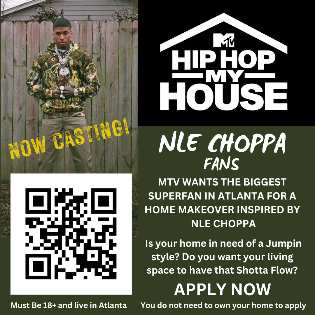 The show is casting superfans of NLE Choppa, Big Boss Vette, or Lil TJay who live in the Atlanta area to get their home made over with the help of the artist they are a superfan of. In order to be considered for the hip hop celebrity makeover, you must live in the Atlanta area and at least 18 years of age. Owning your own home is not required.