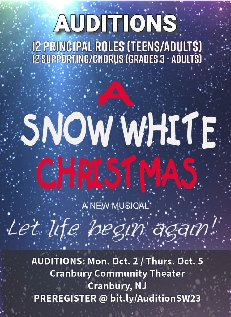 AUDITIONS for Cranbury Arts Council’s presentation of “A SNOW WHITE CHRISTMAS”