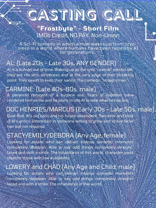 CASTING CALL for Sci-Fi Short Film: “FROSTBYTE”
