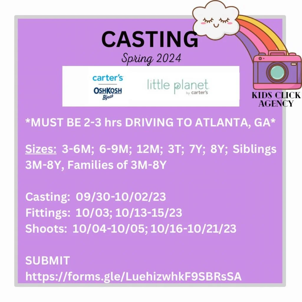 CASTING: Carter’s/OshKosh/Little Plant Exclusive Brands For Spring 2024