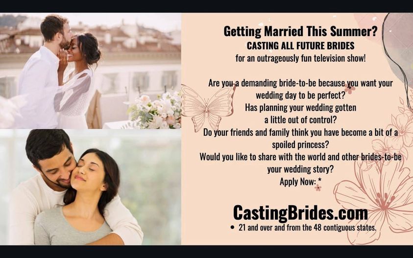 Now casting future brides for an outrageously fun TV show that will be filming shortly.