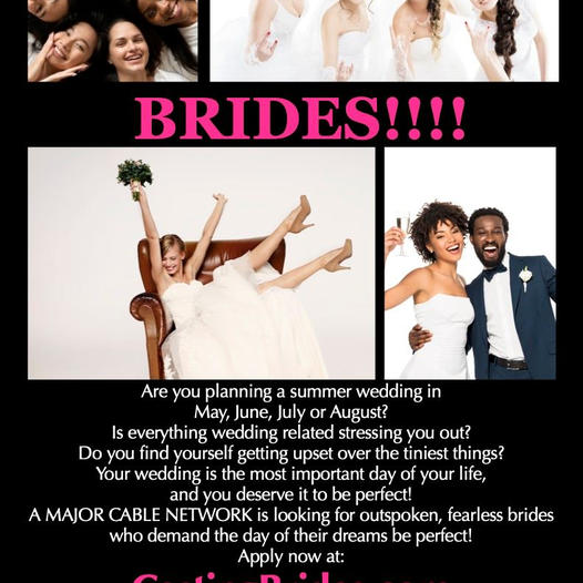Now Casting Future Brides in TEXAS and ATLANTA for a Wedding Show on a Major Cable Network.