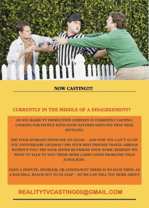 A New York City area based production company is now casting people who are in the middle of a dispute, that is relatively good natured and that they would love to see settled.