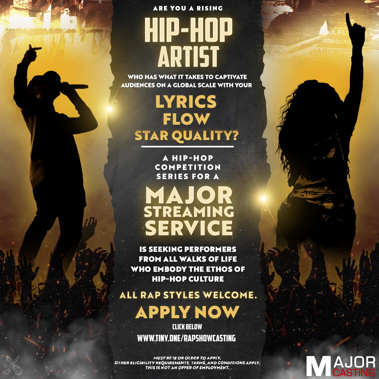 A major streaming service is in search of talented performers from diverse backgrounds who embody the spirit of hip-hop culture. All styles of rap are welcome.