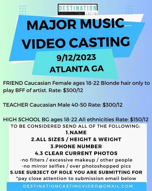 Atlanta area casting directors are seeking ATL locals to work as paid background extras on a music video that will be filming next week.