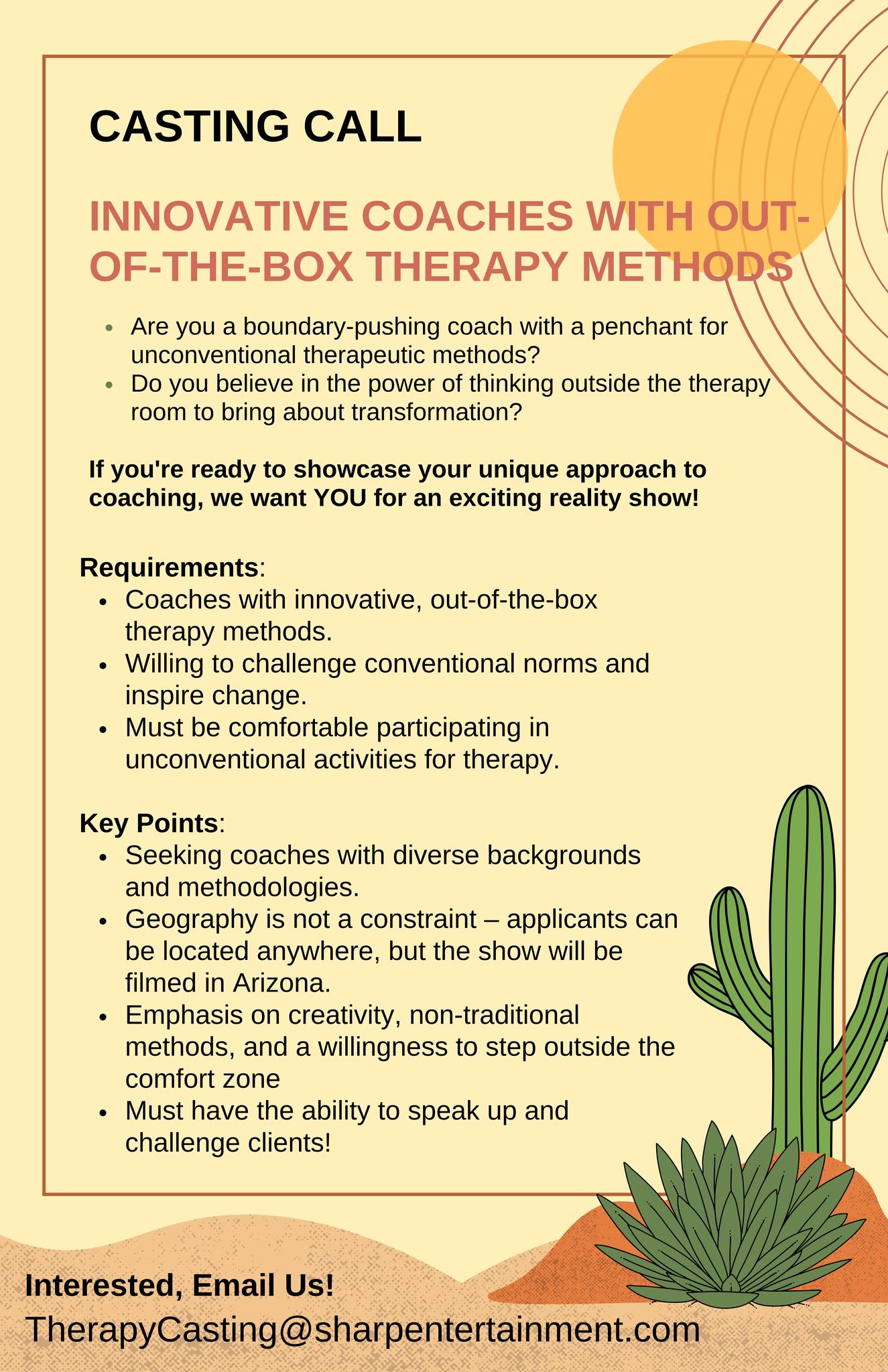Seeking licensed therapists and coaches in Arizona for an exciting project that pushes the boundaries of traditional therapy.